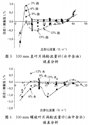 兩種渦輪葉片流量計測量液液雙相流時,*二組分體積分數變化的效應對(0.2%~0.5%)R準確度TUF是不容忽視的。
