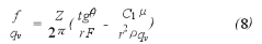 當流量大于始動流量以后,隨著流量的增加,渦輪旋轉角速度也在增大,流體產生的阻力矩Trf將成為影響流量計精度的主要因素。所以,我們假定Trm= 0,式(3)變為: