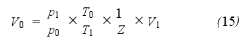 由式(14)可知,氣體的體積與壓力、溫度及壓縮系數均有關,氣體渦輪流量計必須把工況下測得的體積數經過壓力、溫度修正換算為標準狀態下的體積值。且當氣體的溫度比較低,壓力比較高時,必須考慮壓縮系數的影響,這樣才能保證高精度的氣體流量計量。換算公式為: