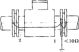 (2)傳感器安裝在塑料管道或內壁有絕緣涂層、襯里、漆層的金屬管道上的接地