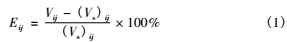 (1)式中:Eij為*i個檢定點*j次檢定被檢流量計的示值誤差百分數;Vij 為*i個檢定點*j次檢定時流量計顯示的累計流量值,單位為m3或L;(Vs)ij為*i個檢定點*j次檢定時標準裝置測得的累計流量值,單位為m3或L。