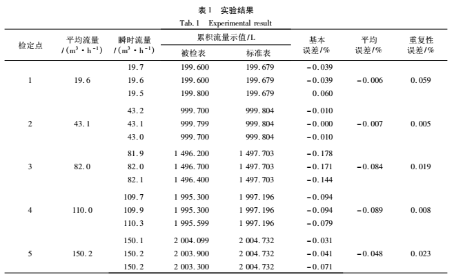 (2)-(3)式中:Ei為*i個檢定點n次檢定的平均誤差;Eimax為*i個檢定點n次檢定基本誤差中的*大值;Eimin為*i個檢定點n次檢定基本誤差中的*小值;(Er)i為*i檢定點累積流量重復性誤差;dn為*差法系數,n=3時按檢定規則取為1.69。